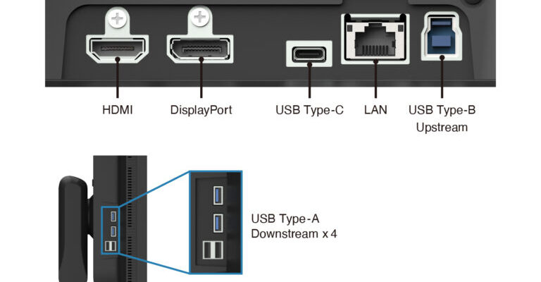 ColorEdge CG2700X wyposażono w złącza wejściowe DisplayPort, HDMI i USB-C. Oprócz tego monitor ma wbudowane cztery porty USB-A (dwa w standardzie 3.1 Gen 1 i dwa w standardzie 2.0) umożliwiające podłączenie urządzeń peryferyjnych. Dodatkowo monitor wyposażono we wbudowany w port LAN, pozwalający uzyskać stabilne przewodowe połączenie z siecią.