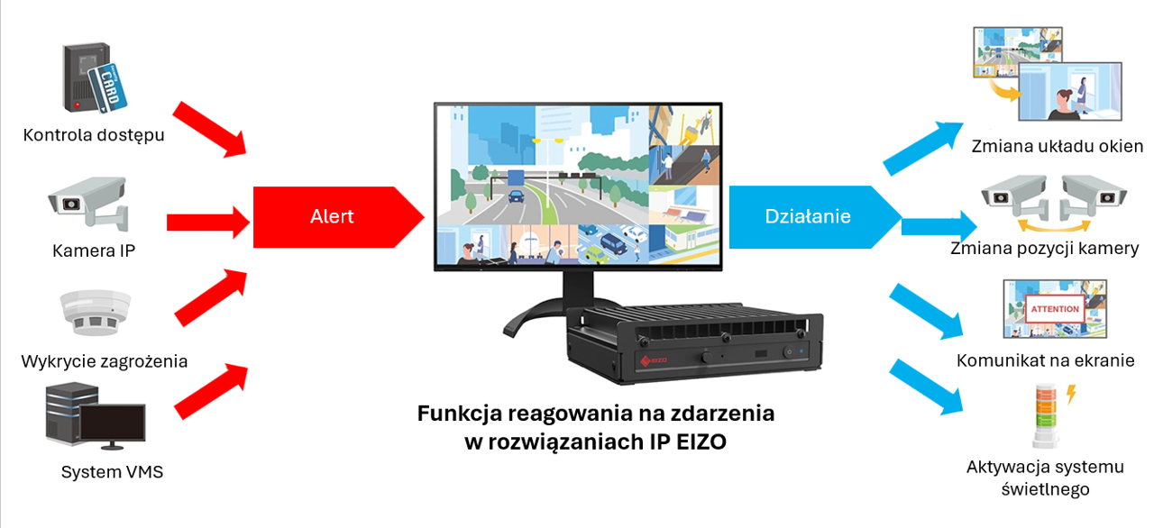Rozwiązania EIZO do dekodowania sygnału IP oferują elastyczność dopasowaną do różnych potrzeb. DX0131-IP zapewnia podstawowe funkcje i kluczowe możliwości w prostej, kompaktowej formie, natomiast DX0231-IP rozwija te możliwości o funkcje zaawansowane – m.in. wyświetlanie większej liczby strumieni z kamer oraz obsługę wielu monitorów. Dzięki temu można wybrać rozwiązanie najlepiej dopasowane do danego środowiska pracy.