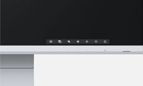 Zamiast tradycyjnych przycisków mechanicznych, w modelu EV2360 zastosowano przełączniki elektrostatyczne zintegrowane z przednim panelem. Dzięki temu obsługa monitora jest wyjątkowo wygodna, a sam ekran zyskuje elegancki, nowoczesny wygląd. Głośniki oraz wszystkie elementy sterujące umieszczono w ramce, skierowanej bezpośrednio w stronę użytkownika. Całość jest doskonale wkomponowana w płaską, niemal bezramkową konstrukcję monitora, co zapewnia estetyczny wygląd i wysoki komfort użytkowania.