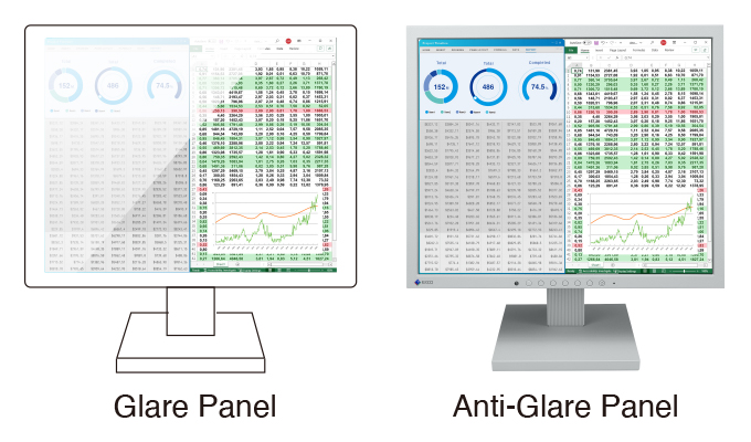 Panel pokryty jest powłoką antyodblaskową, która redukuje odbicia światła otoczenia, poprawiając widoczność i komfort pracy.