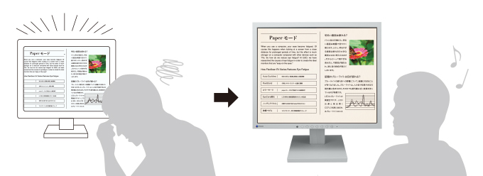 Tryb Paper Mode symuluje wygląd wydrukowanej kartki, ograniczając emisję niebieskiego światła i tym samym zmniejszając zmęczenie oczu przy czytaniu dokumentów cyfrowych. W połączeniu z funkcją Auto EcoView redukcja może sięgać nawet 80%.