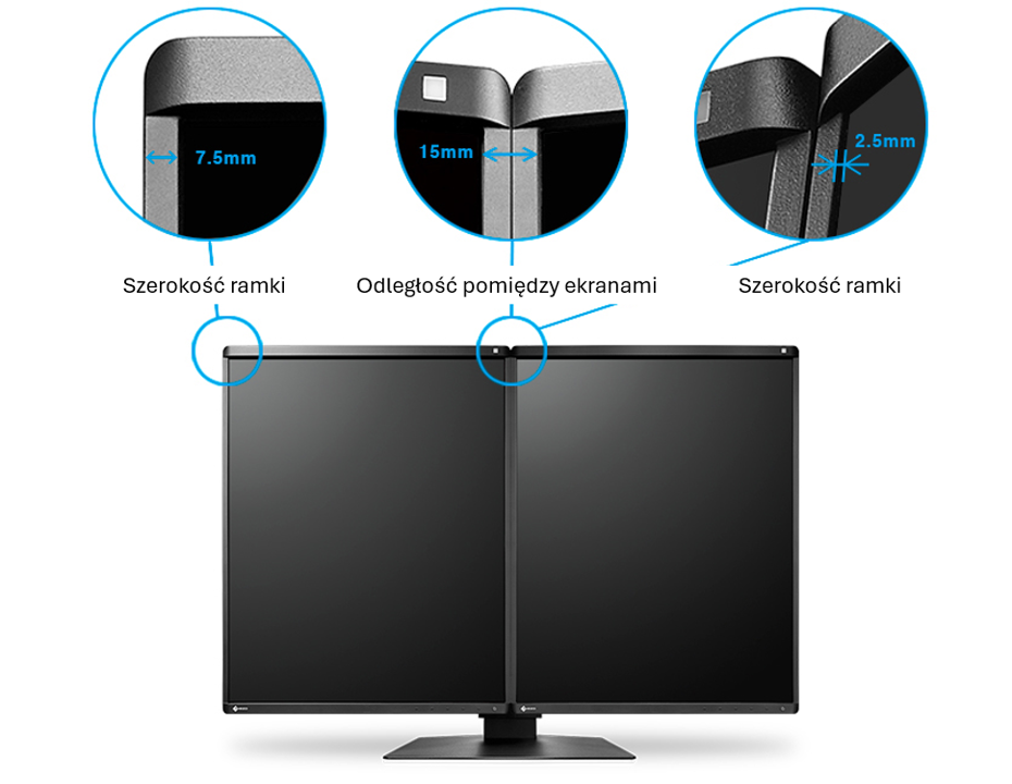 GX570 ma ramkę o szerokości zaledwie 7,5 mm – najcieńszą spośród wszystkich 5-megapikselowych monitorów dostępnych na rynku. Dzięki niej całkowita odległość między dwoma ekranami wynosi tylko 15 mm. Na dodatek ramka znajduje się jedynie 2,5 mm powyżej ekranu, co pozwala uzyskać niemal idealnie płaską powierzchnię w konfiguracji dwumonitorowej.