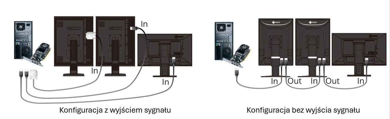 Uwaga: Konieczna jest karta graficzna wspierająca konfigurację szeregową. Mogą być konieczne dodatkowe kable sygnałowe.