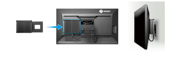 VOP-01 służy do montażu dekodera DuraVision DX0212-IP z tyłu dowolnego monitora obsługującego standard VESA, zajmując minimalną przestrzeń w obszarze instalacji. Bezpośrednie przymocowanie do monitora pomaga również w uporządkowaniu okablowania, ograniczając bałagan do wyznaczonej przestrzeni.