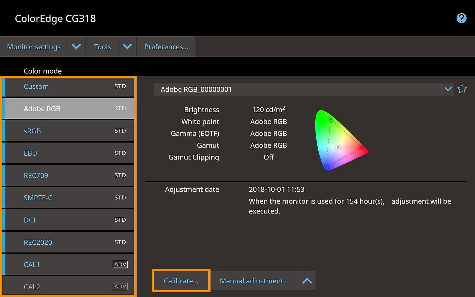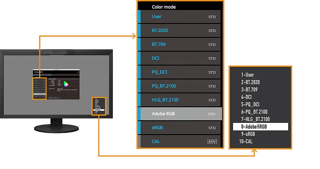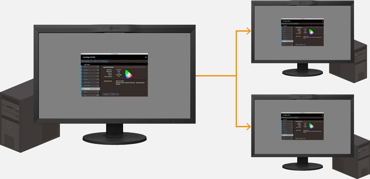 Szeroki zakres trybów kolorów, takich jak sRGB, Adobe RGB i Rec. 709, jest przechowywany w pamięci monitora i może być dostosowany oraz kalibrowany za pomocą oprogramowania ColorNavigator 7.