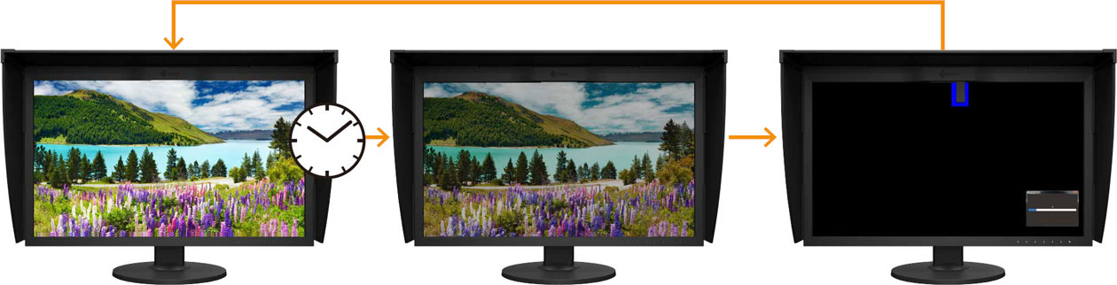 Monitor należy kalibrować regularnie, aby zapewnić stałą dokładność odwzorowania kolorów. ColorNavigator 7 umożliwia automatyczną kalibrację monitora w określonych godzinach lub w regularnych odstępach czasu przy użyciu zintegrowanego czujnika kalibracji, nawet gdy monitor jest wyłączony. Jeśli nie zdecydujesz się na pełną automatyzację, możesz ustawić przypomnienie, które będzie przypominać o konieczności kalibracji.